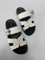 Sandalias planas de cuero blanco, con diseño elegante y minimalista. Comodidad todo el día, perfectas para un look casual y sofisticado.