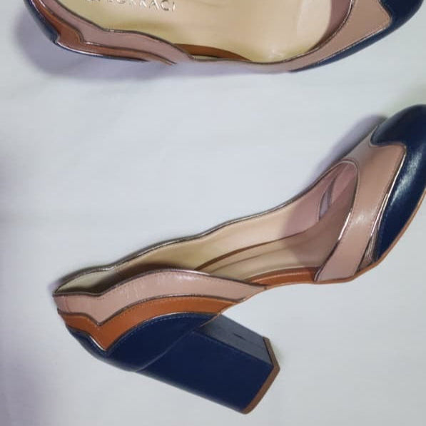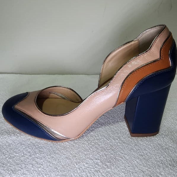Diseño envolvente y femenino que mezcla tonos nude, caramelo y azul marino con una elegancia natural. Brisa Tricolor es un zapato sofisticado y versátil, ideal para mujeres que buscan estilo y estabilidad.