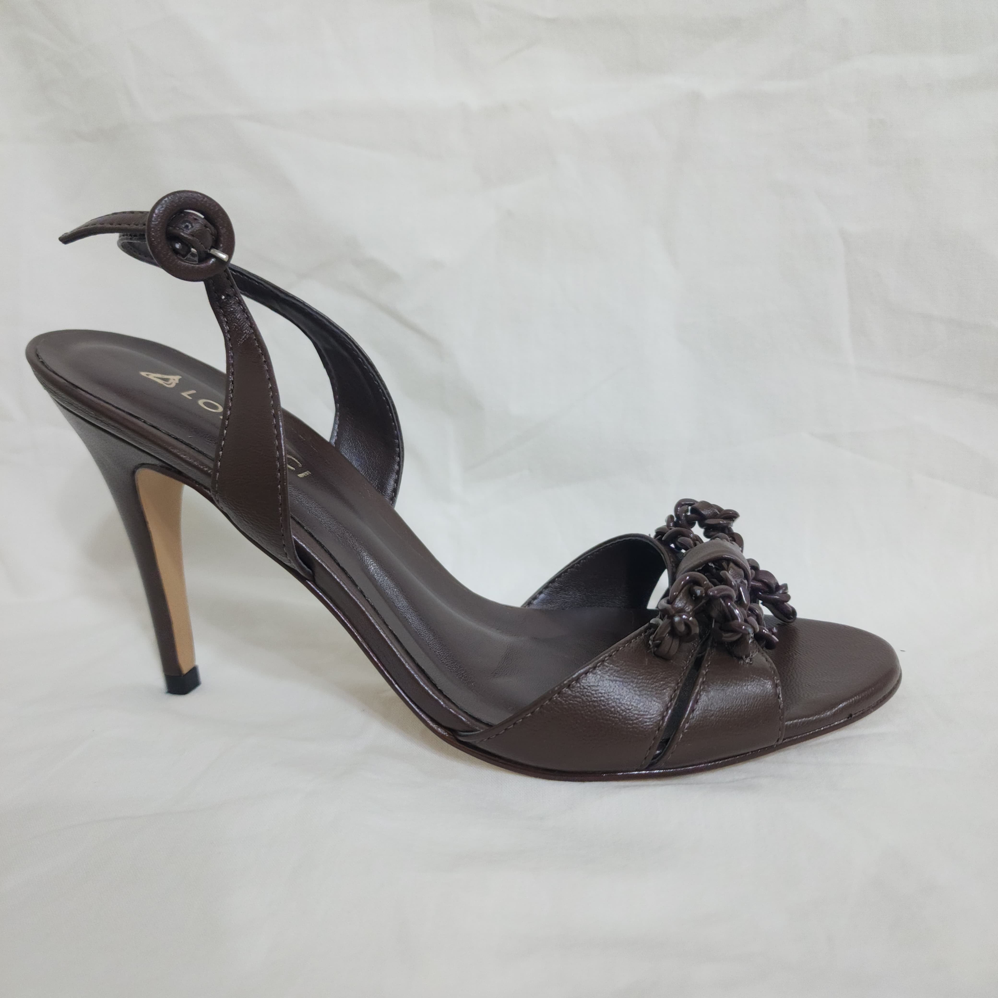 Gaia Chocolate es el equilibrio perfecto entre sensualidad y sofisticación. Su color marrón profundo lo convierte en un básico elegante, ideal para combinar con tonos cálidos, neutros o dorados. El diseño con tacón alto estiliza la silueta, mientras el adorno tipo cadena frontal añade un toque artesanal y moderno. Perfecto para ocasiones especiales, cenas o eventos donde quieras destacar con elegancia discreta.