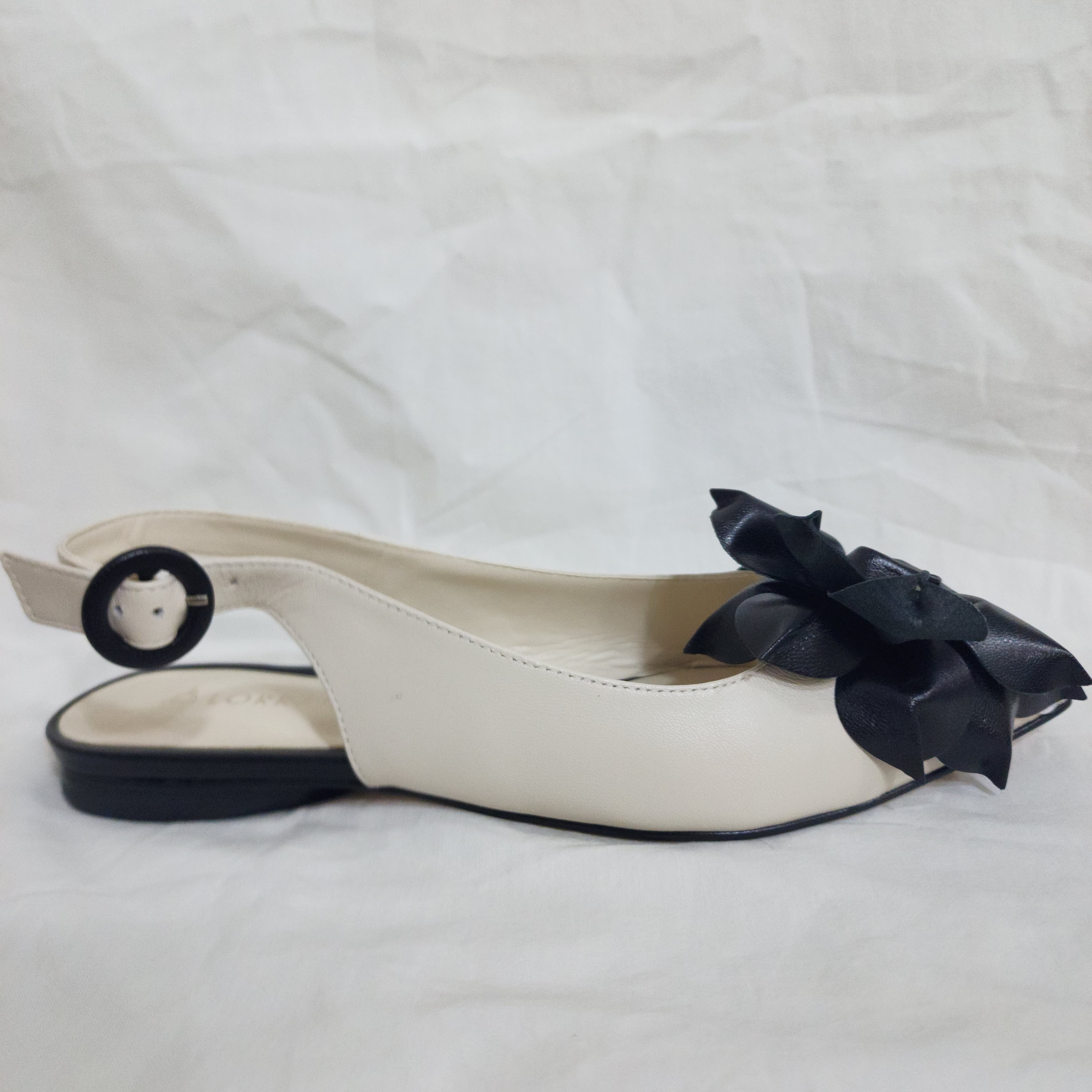 Fiore Ivory es una flat que habla en susurros de elegancia. Su combinación en blanco marfil con detalle de flor negra le da un toque sofisticado y romántico, ideal para quienes aman los detalles sin exageraciones. El diseño slingback con hebilla redonda ofrece ajuste y ligereza, mientras la suela plana garantiza comodidad durante todo el día. Perfectas para looks en tonos neutros, faldas vaporosas o pantalones tipo palazzo.