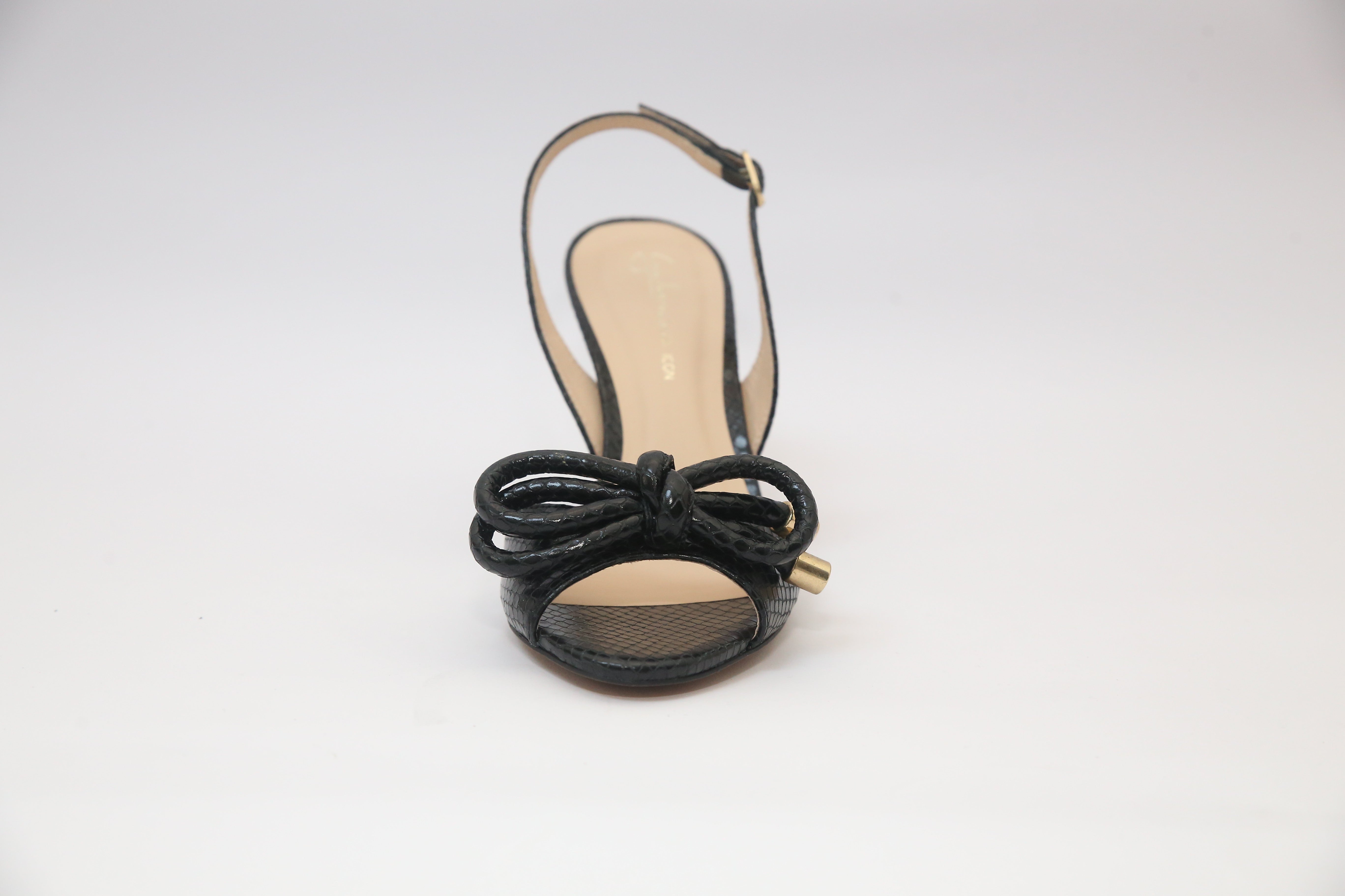 Elegante sandalia Guilhermina en negro profundo con delicados lazos que añaden un toque de distinción. Su diseño versátil complementa tanto atuendos formales como casuales, mientras proporciona la comodidad característica de nuestro calzado brasileño artesanal. Un accesorio sofisticado para la mujer contemporánea.
