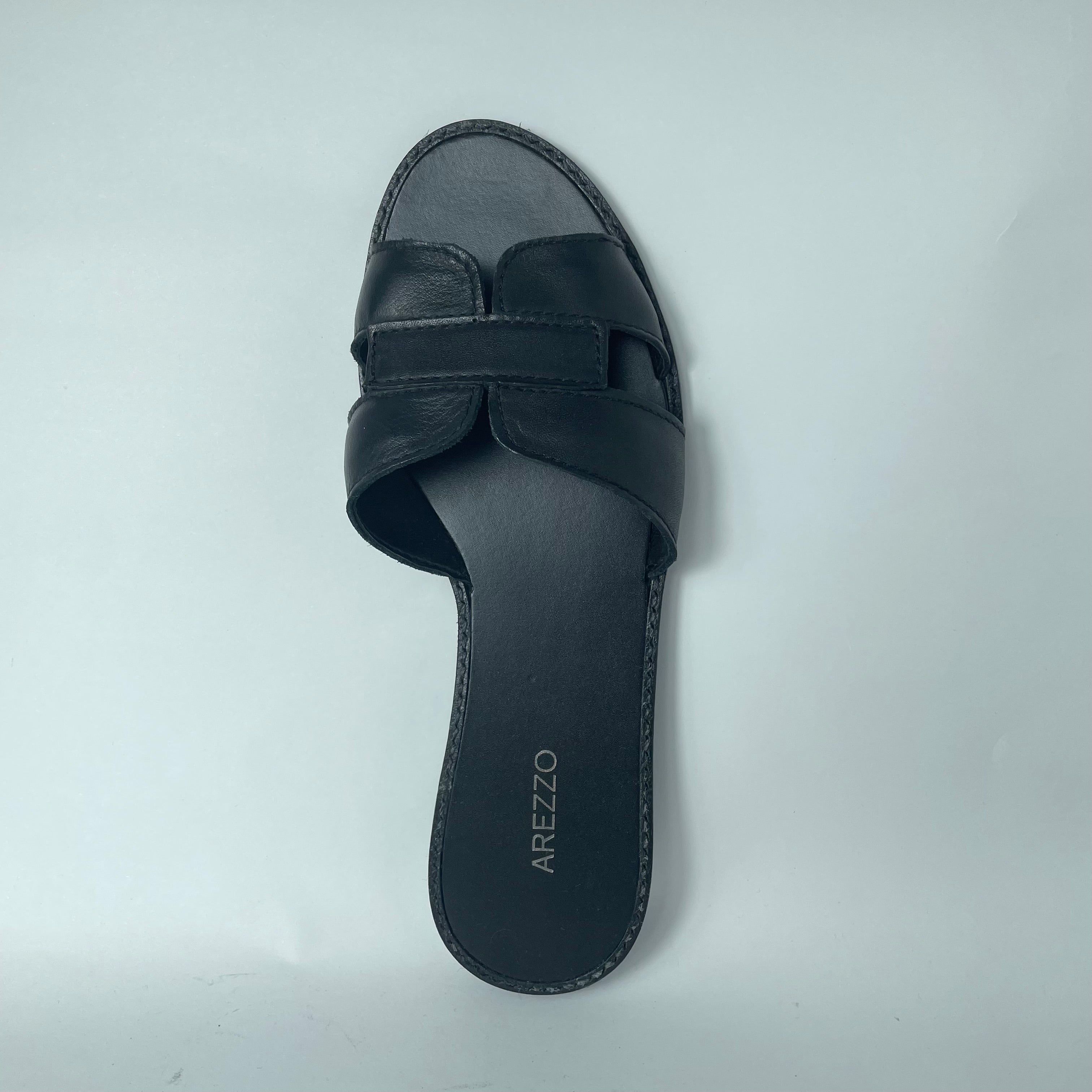 Minimalismo atemporal. Habana Noir es una sandalia plana 100% cuero en tono negro intenso, con diseño cruzado tipo H que abraza el pie con elegancia y confort. Su estilo clásico y suela liviana la hacen ideal para llevar del día a la noche. Perfecta para un look relajado con actitud sofisticada