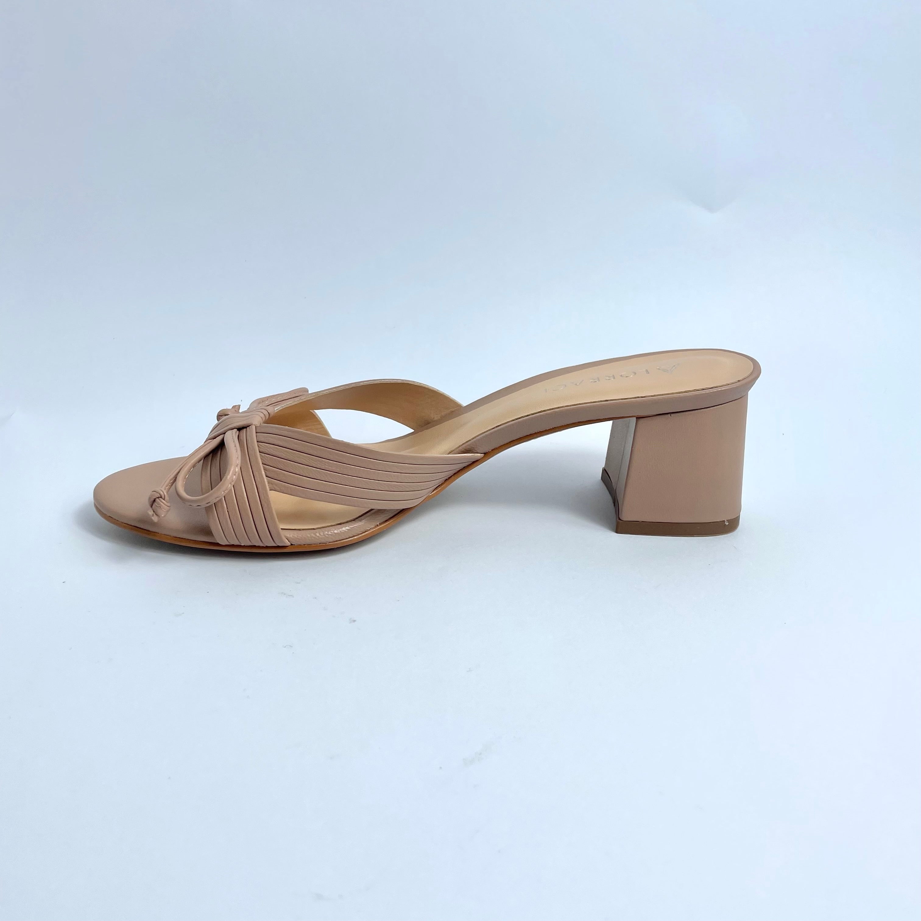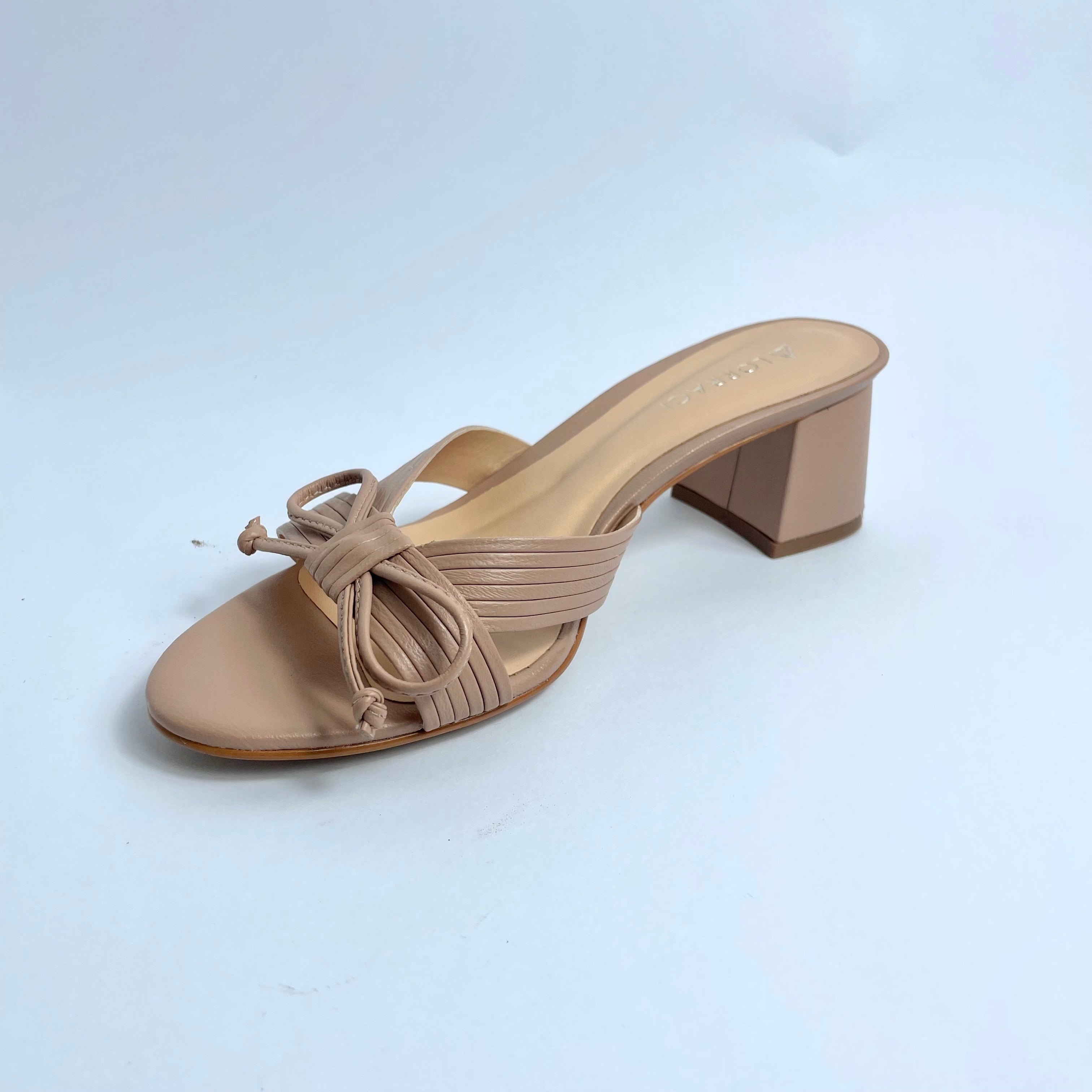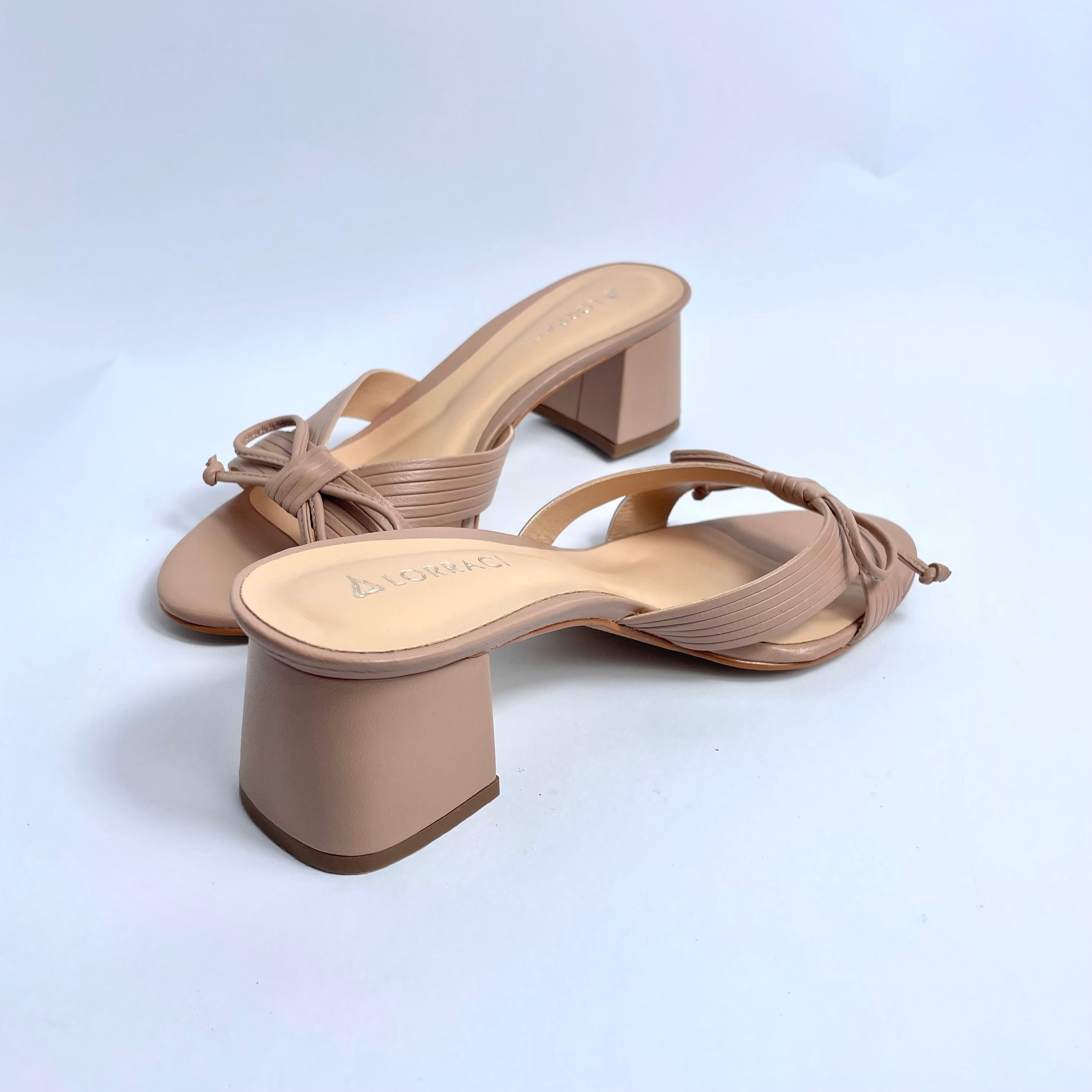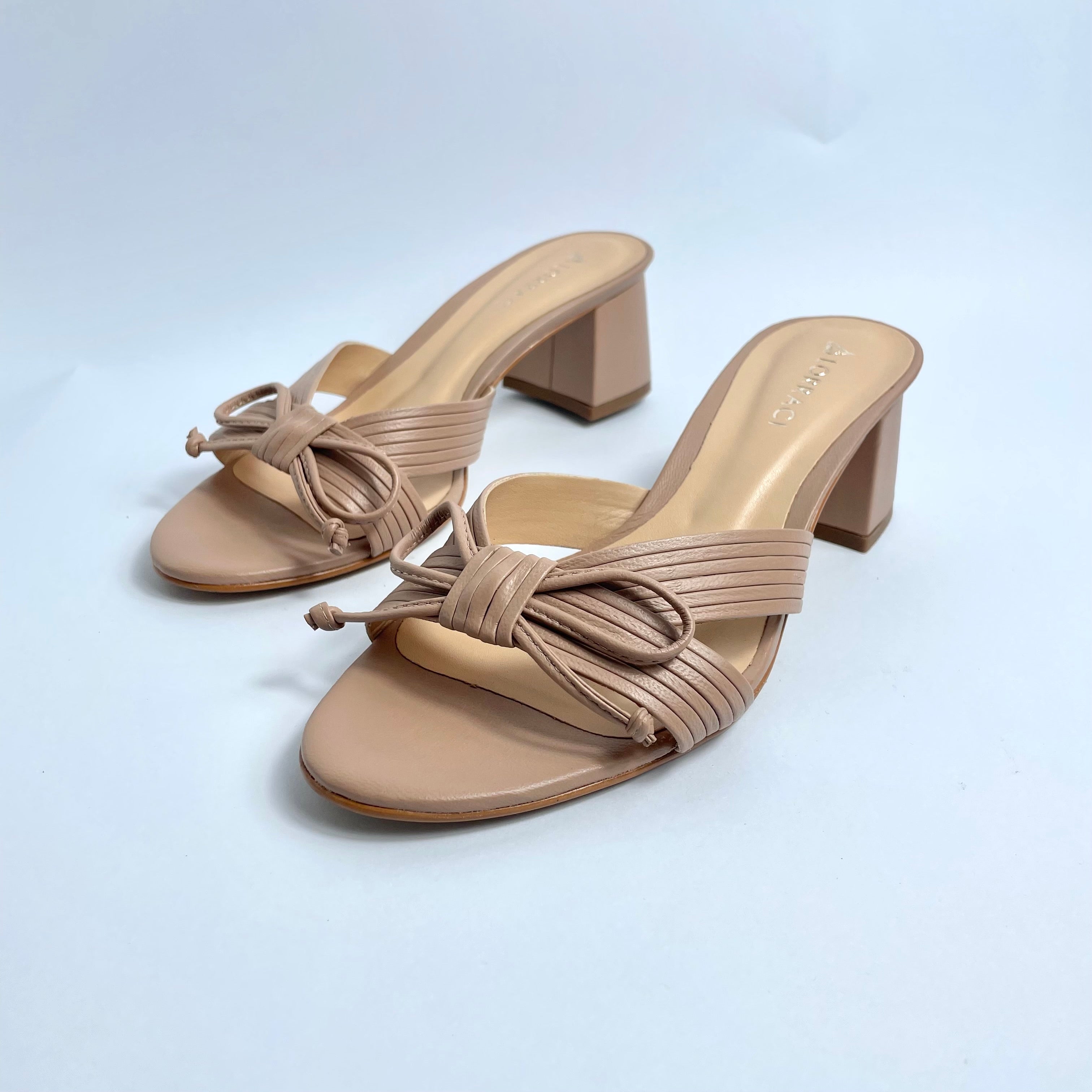 Tacón medio cuadrado en tono nude con tiras finas entrecruzadas y detalle de lazo al frente. Un diseño femenino y versátil que combina comodidad y elegancia para el día a día o una ocasión especial.