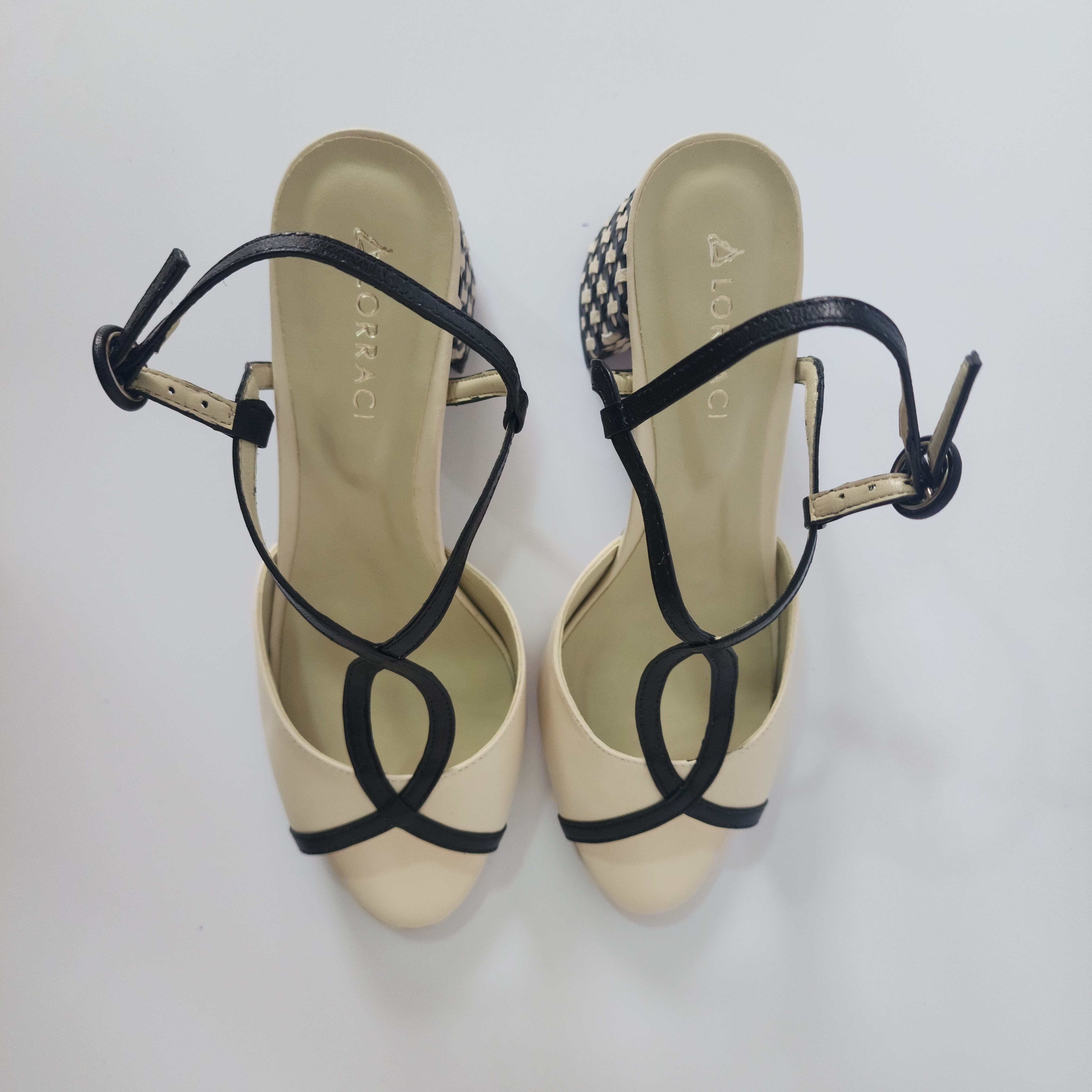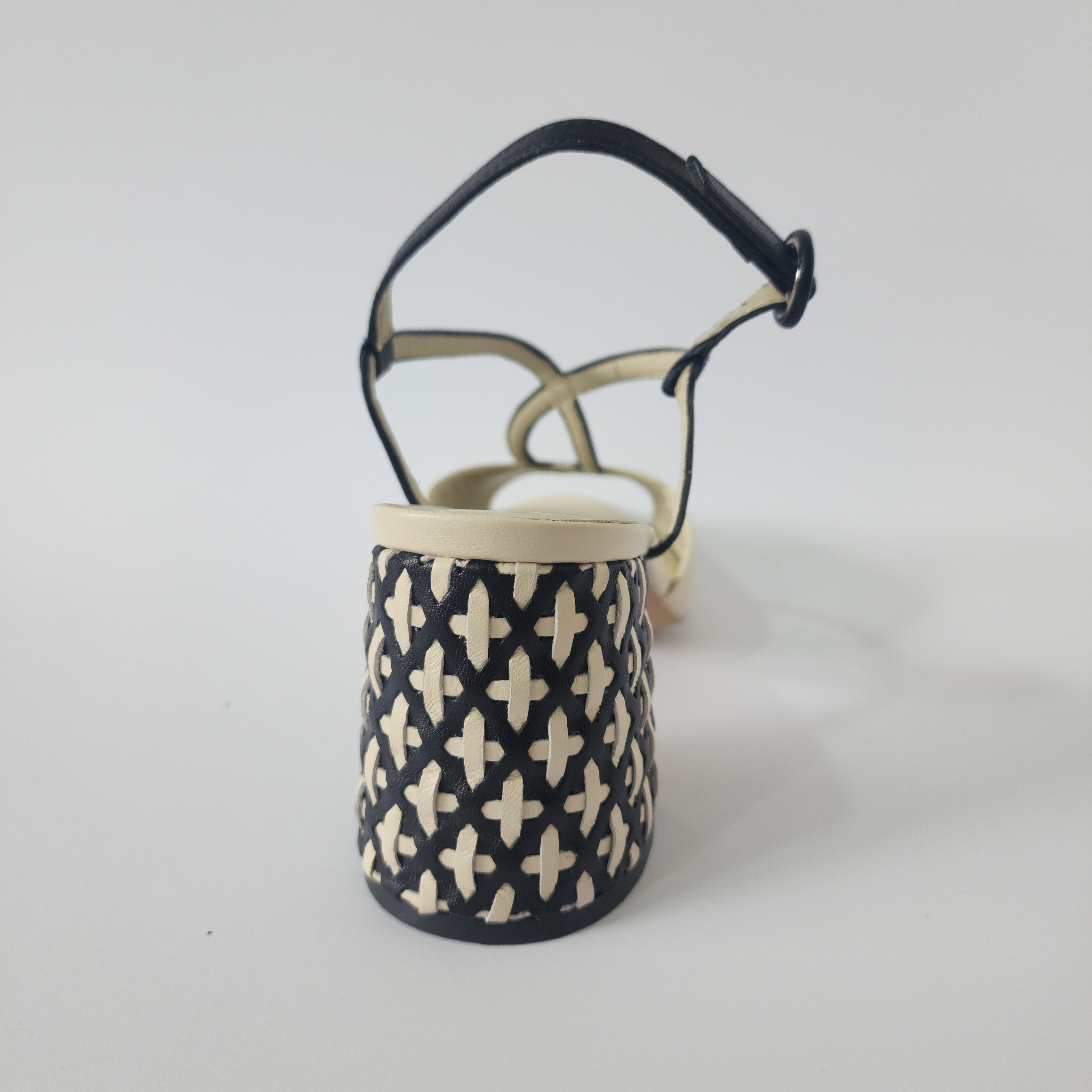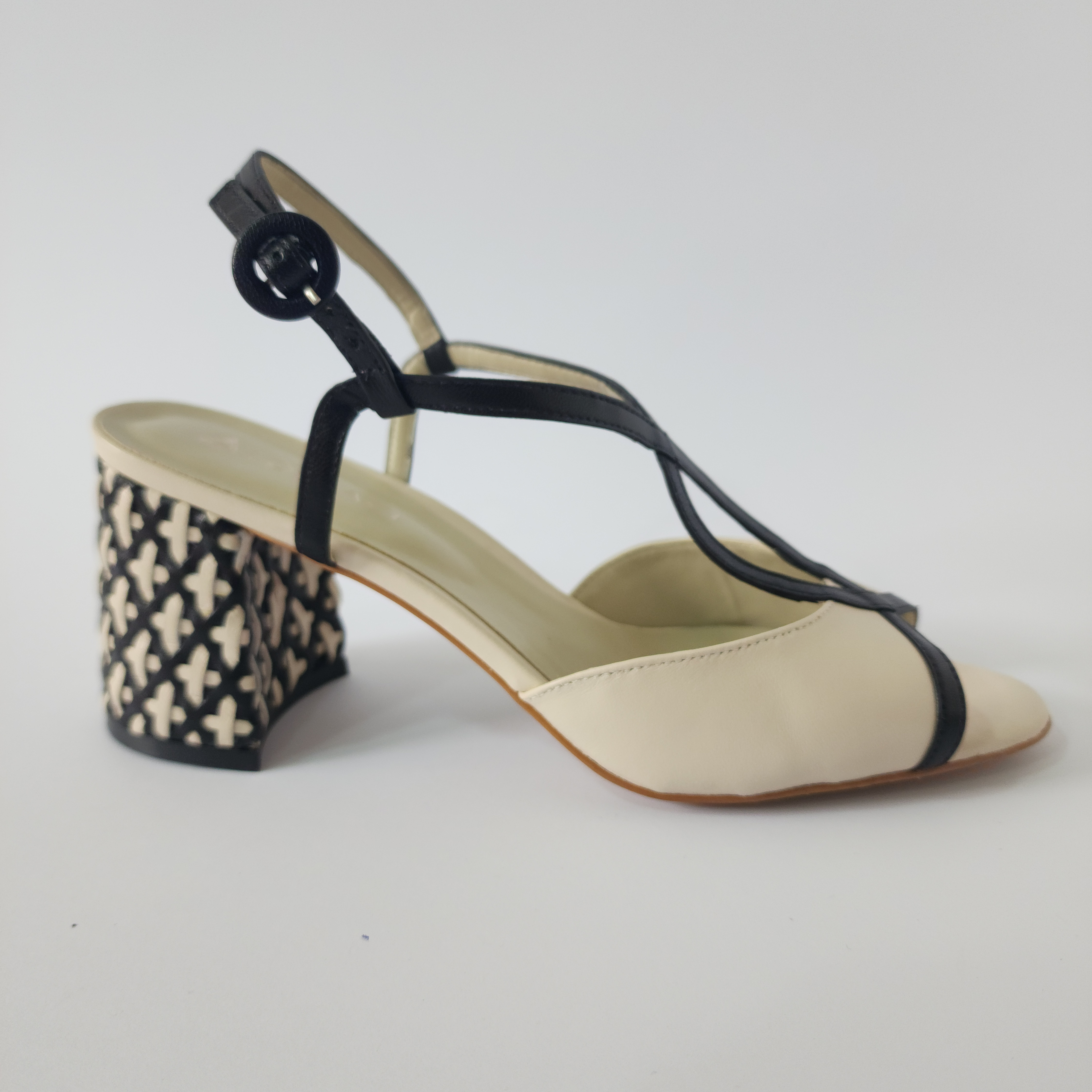 Destaca en elegancia y estilo. Estos tacones en blanco y negro presentan un diseño único en el tacón, que te permitirá lucir sofisticada y exclusiva en cualquier ocasión. Deja que tu calzado sea una obra de arte en tus pies, con un toque de lujo y originalidad.