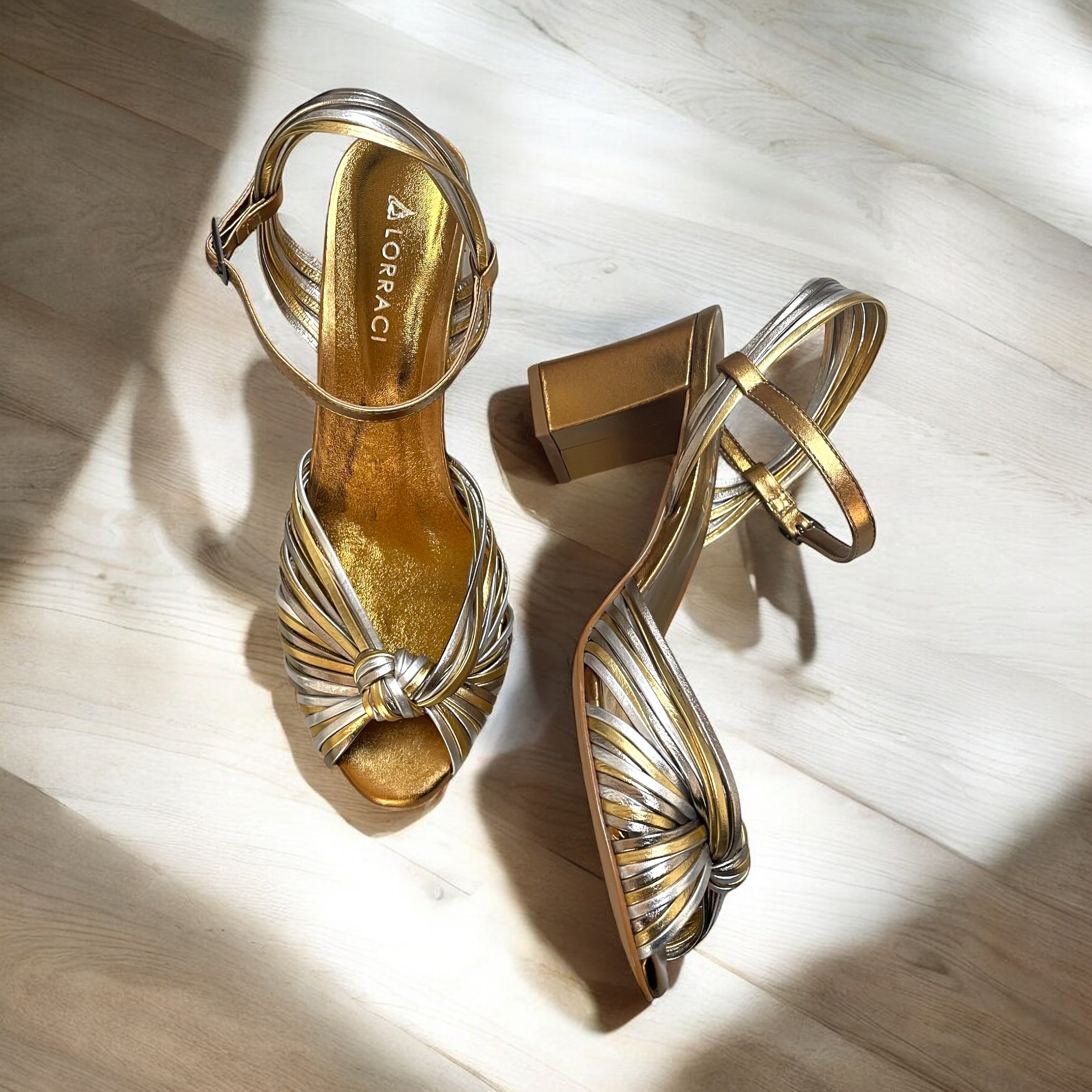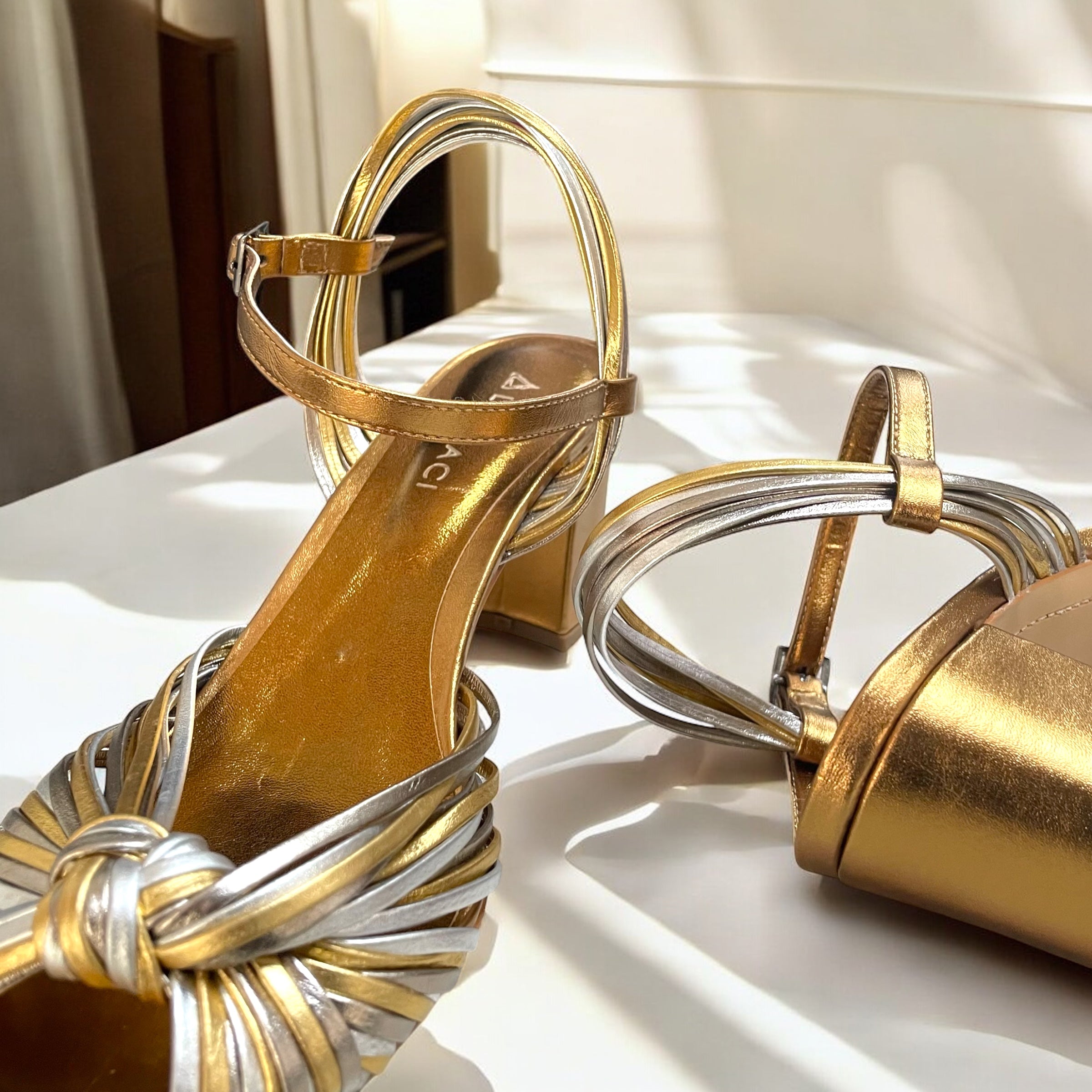 Un toque de luz en cada paso. Luzia Metalic fusiona el encanto del dorado, bronce y plateado con una silueta femenina y sofisticada. Su diseño de tiras cruzadas envuelve el pie con suavidad y estilo, mientras el tacón cuadrado ofrece estabilidad y comodidad para eventos prolongados.