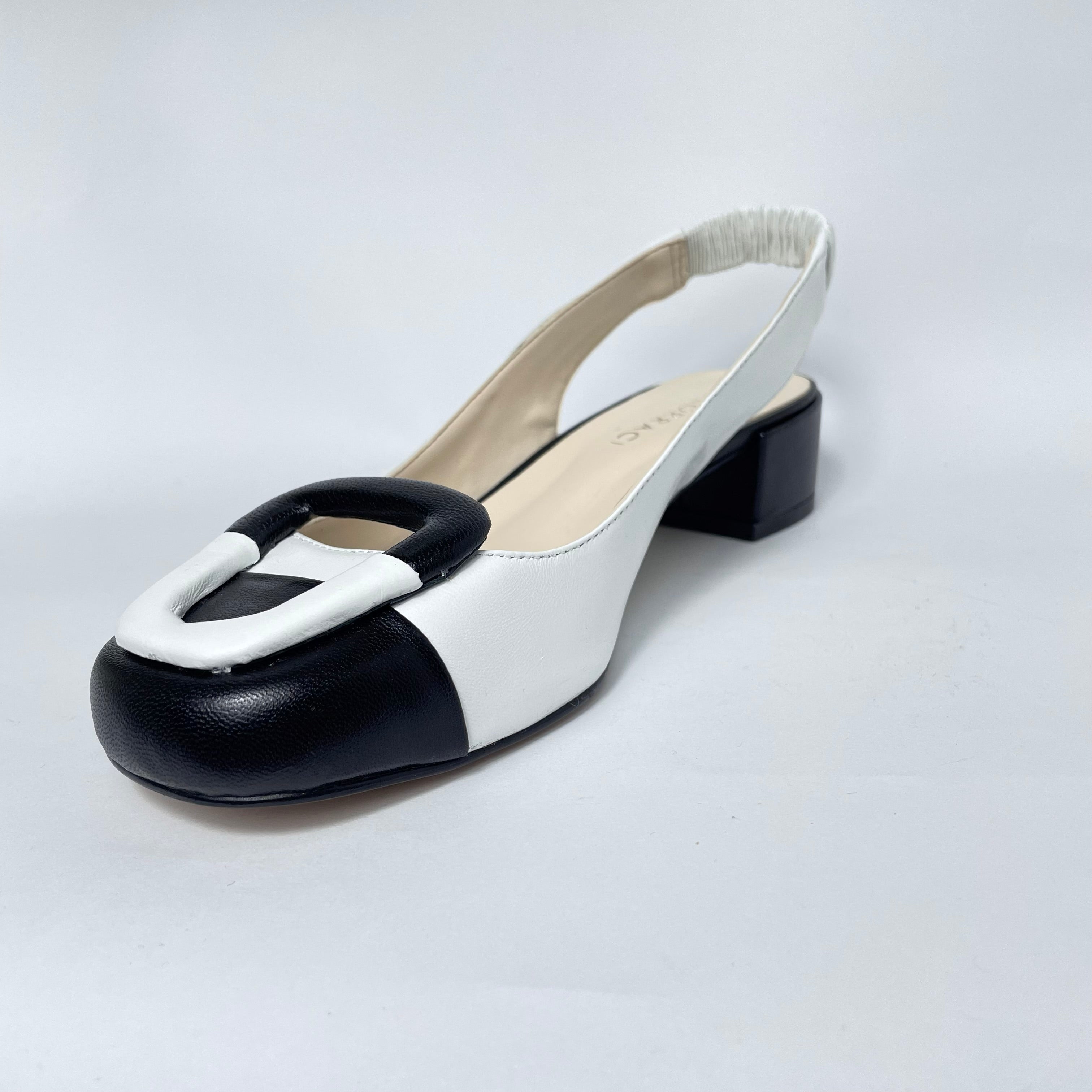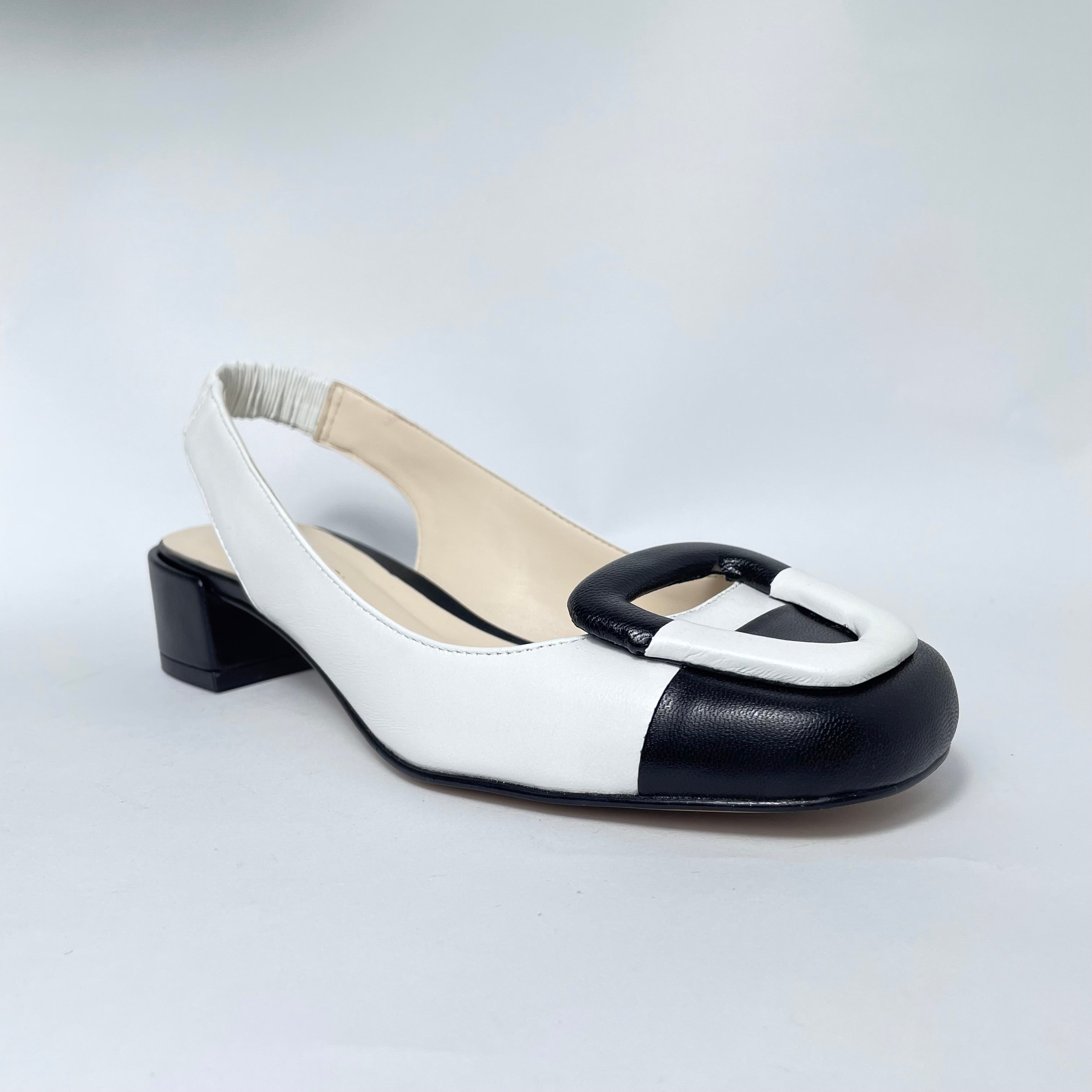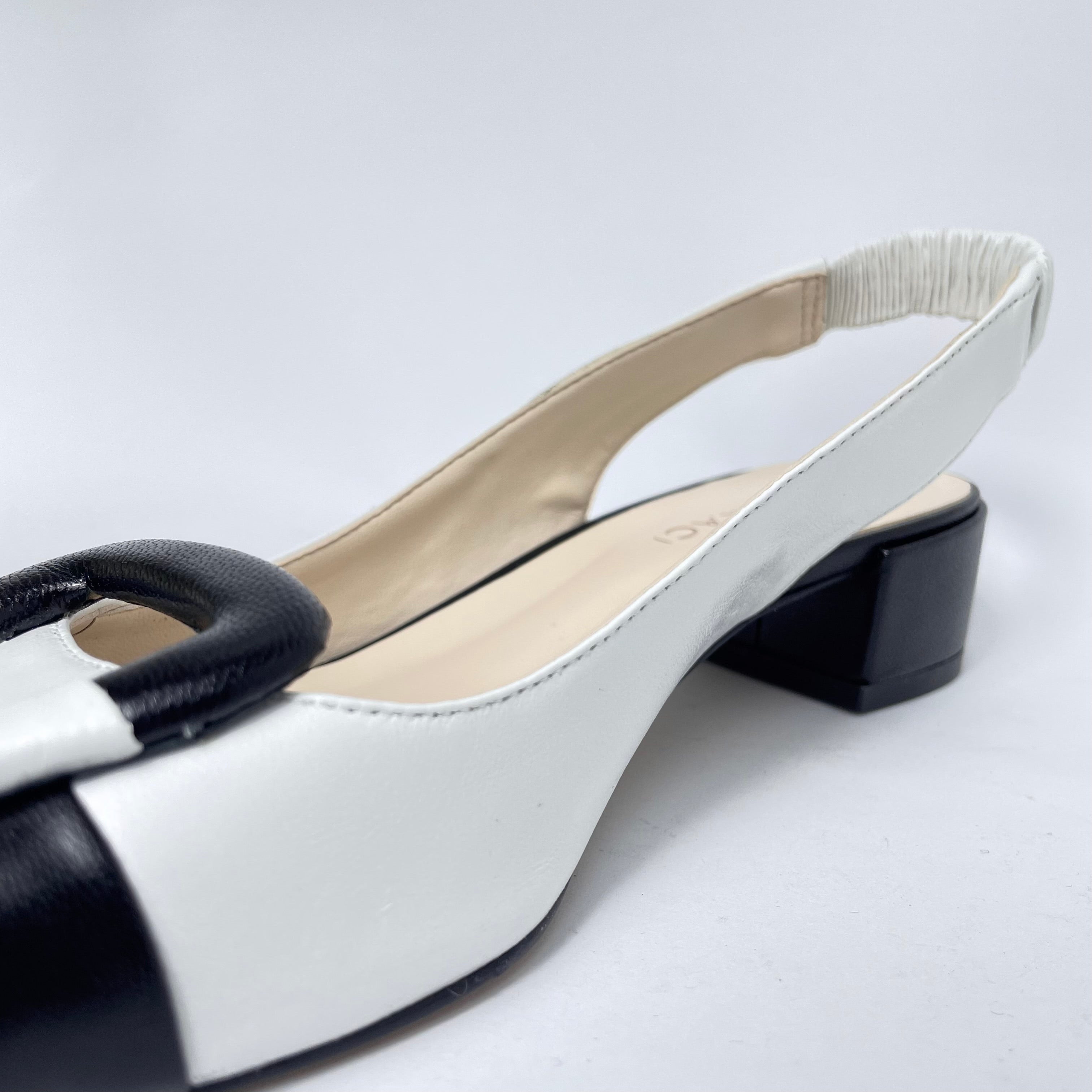 Un clásico reinventado. El Riviera Bicolor combina la sobriedad del blanco con la elegancia del negro en un diseño slingback atemporal. Su detalle decorativo frontal le da un toque refinado y parisino, ideal para quienes buscan estilo sin renunciar a la comodidad. Tacón bajo, plantilla acolchada y versatilidad absoluta para acompañarte del trabajo al café.