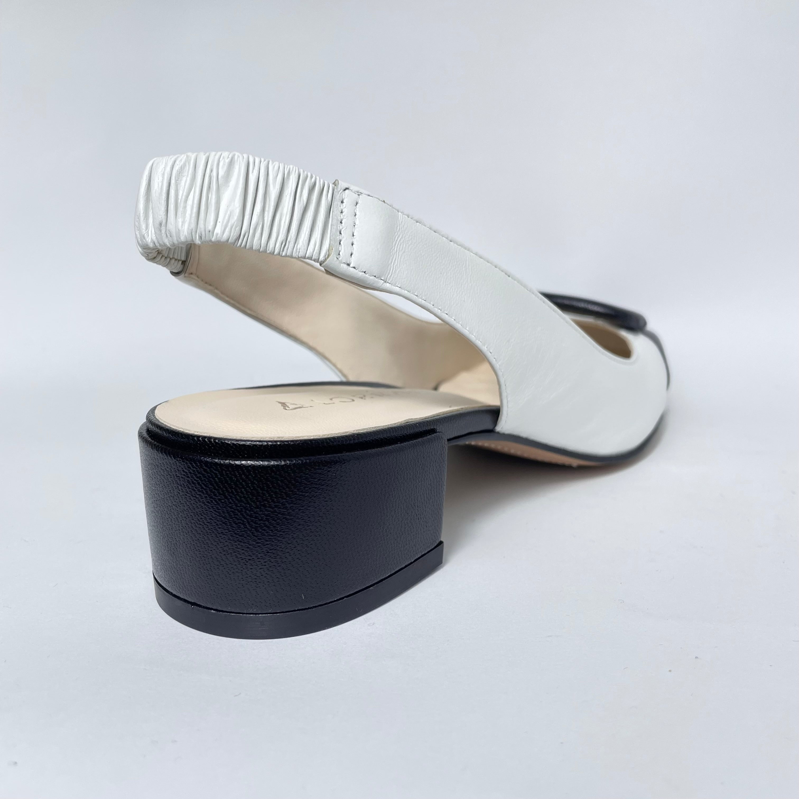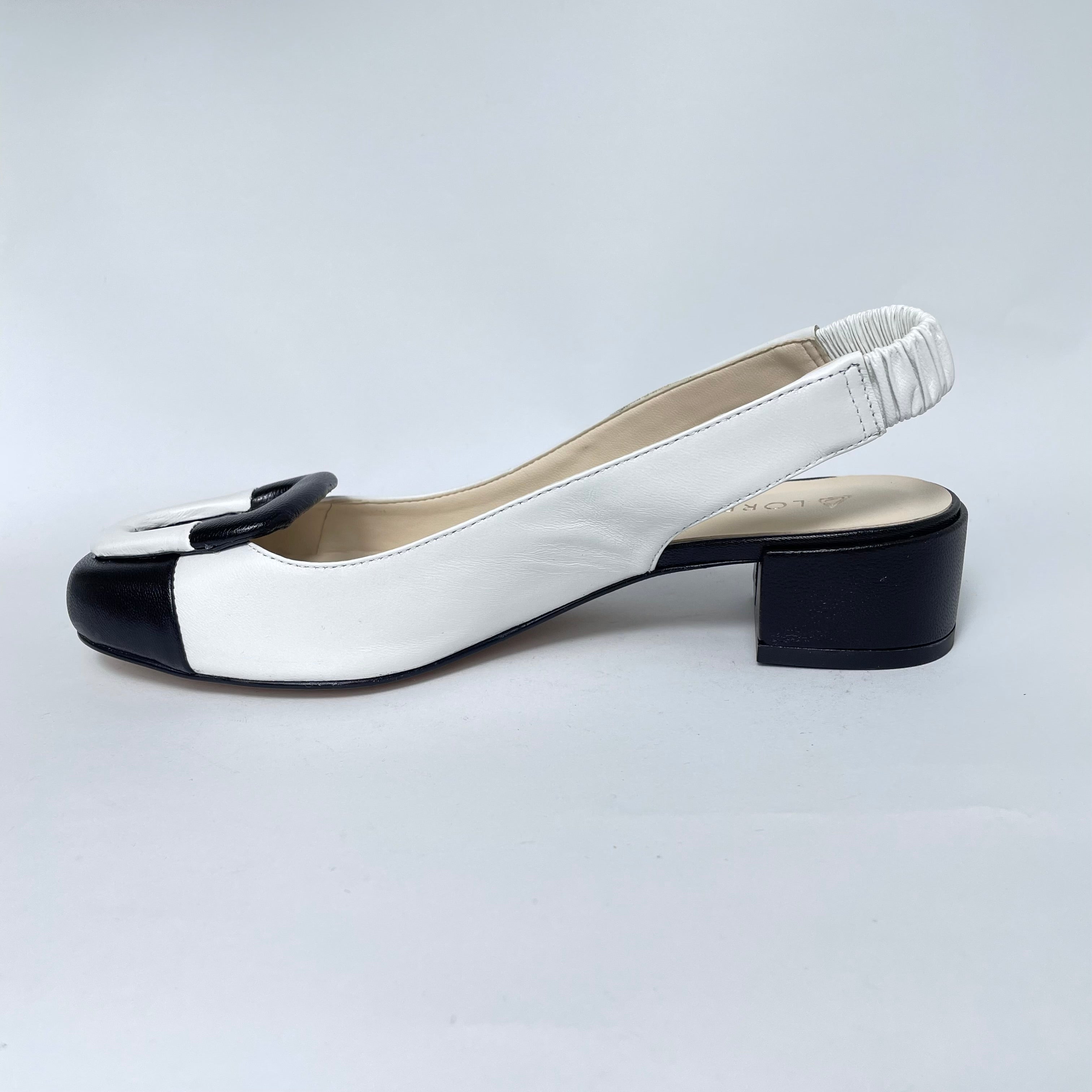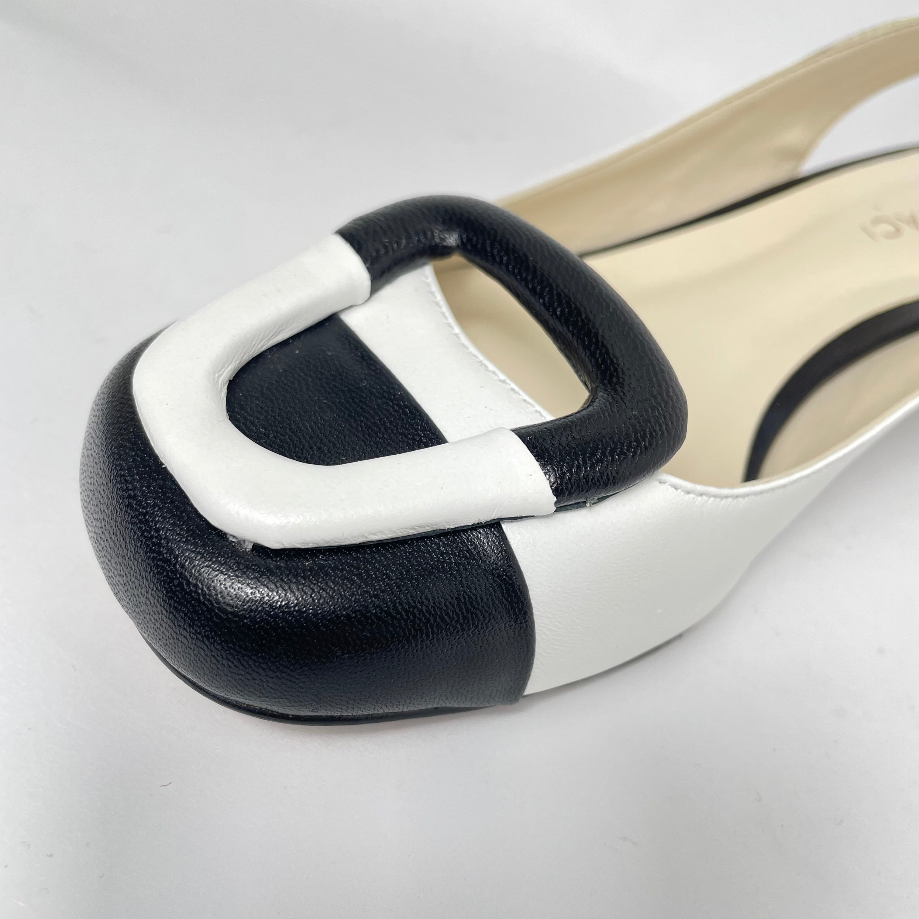 Un clásico reinventado. El Riviera Bicolor combina la sobriedad del blanco con la elegancia del negro en un diseño slingback atemporal. Su detalle decorativo frontal le da un toque refinado y parisino, ideal para quienes buscan estilo sin renunciar a la comodidad. Tacón bajo, plantilla acolchada y versatilidad absoluta para acompañarte del trabajo al café.