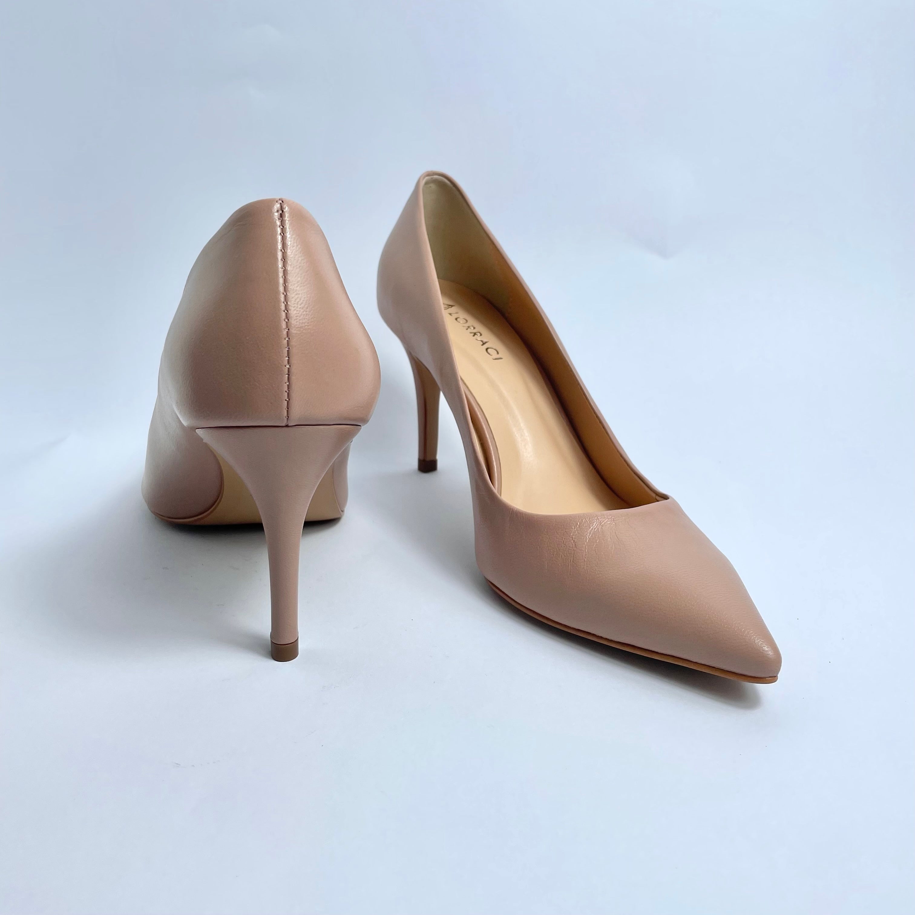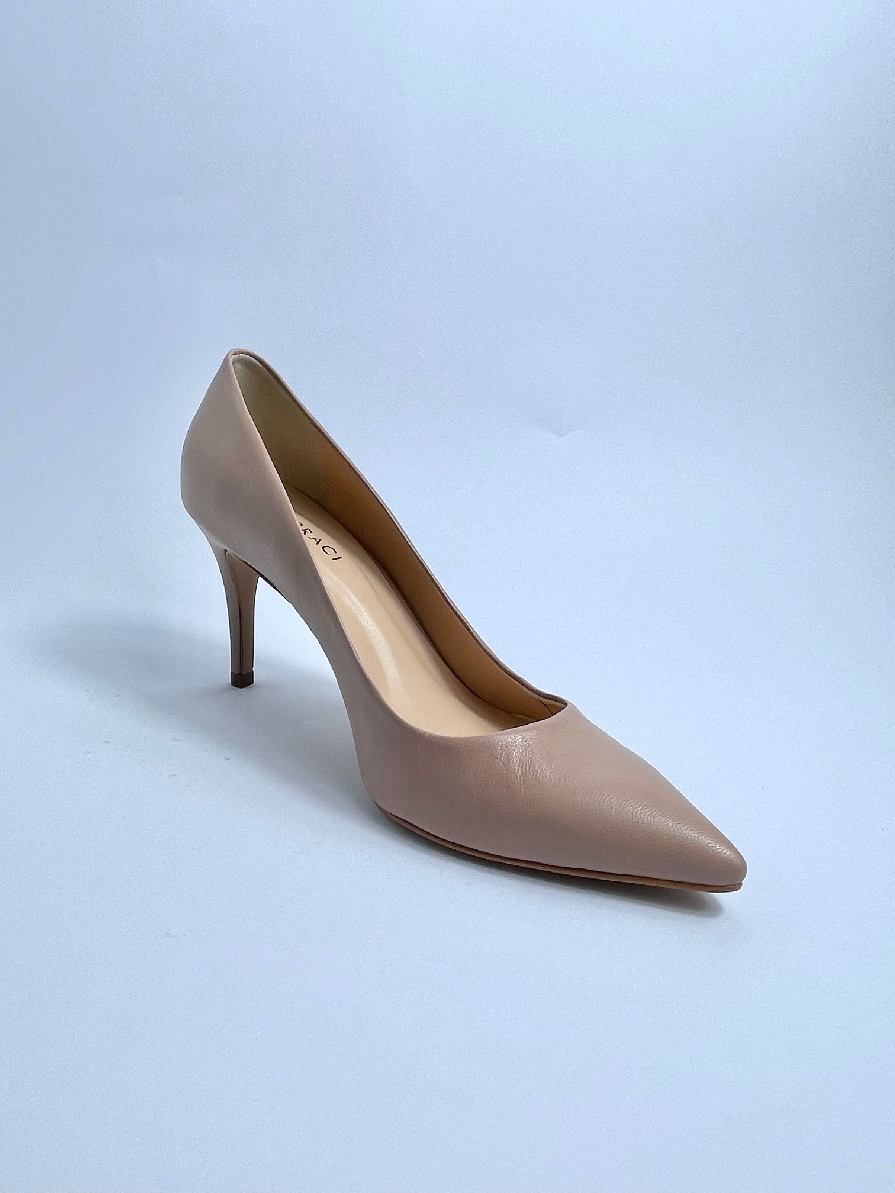 Tacón delgado en tono nude con acabado liso y punta fina. Un básico elegante y atemporal que combina con cualquier look, ideal para llevar del día a la noche con total sofisticación.