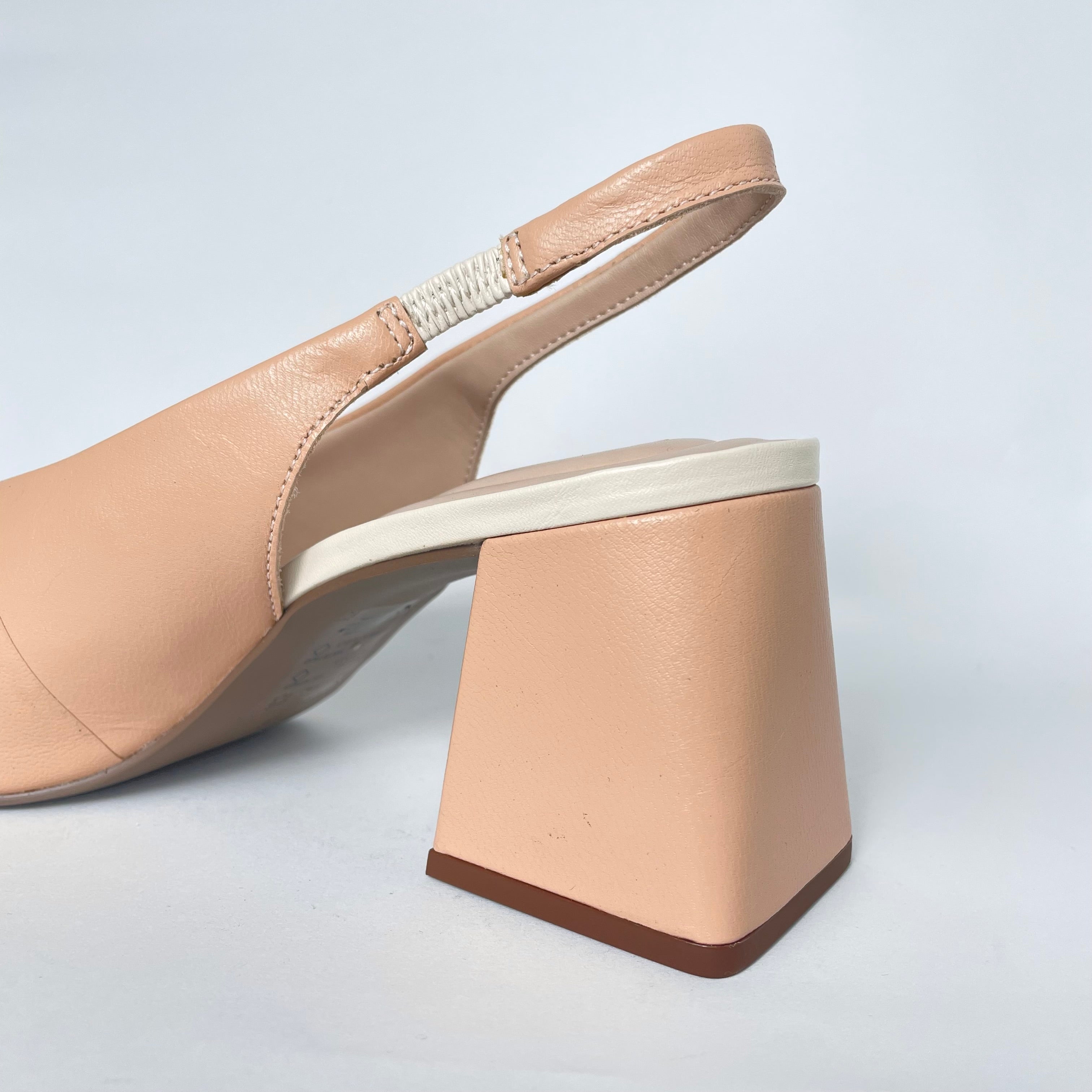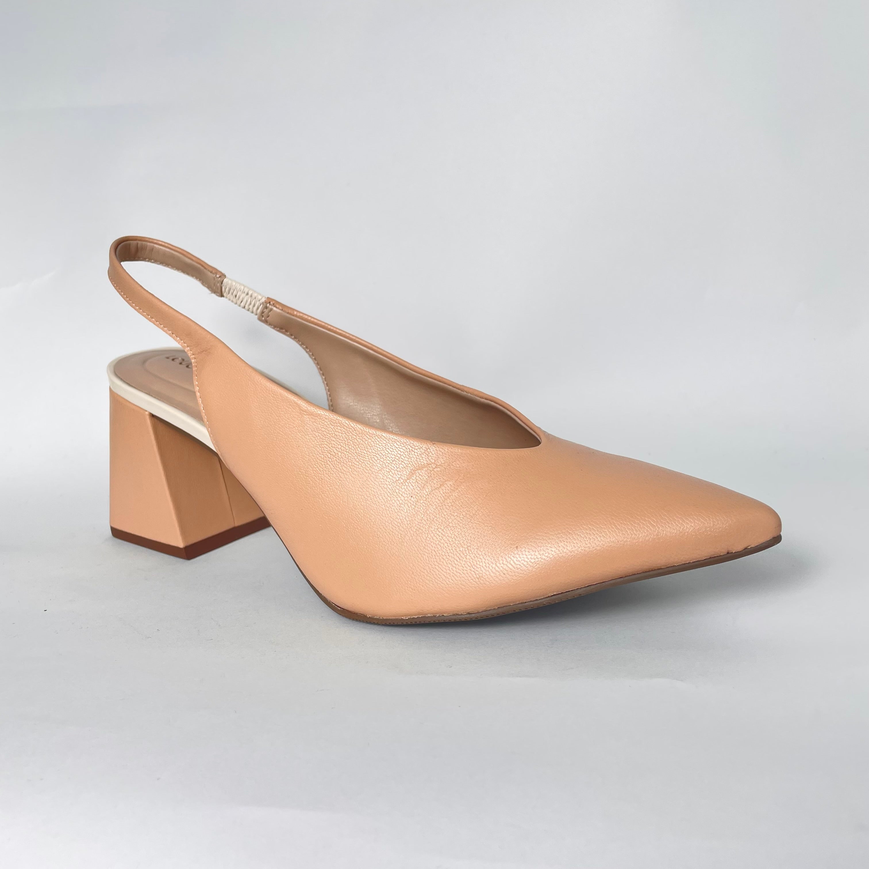 El modelo Verona Nude es sinónimo de elegancia versátil. Su diseño en punta estiliza visualmente la silueta, mientras que el tacón geométrico brinda firmeza y modernidad. Con correa trasera elástica para un ajuste perfecto, este slingback en tono nude se adapta a looks de oficina o salidas más sofisticadas. Minimalismo chic con un giro contemporáneo.